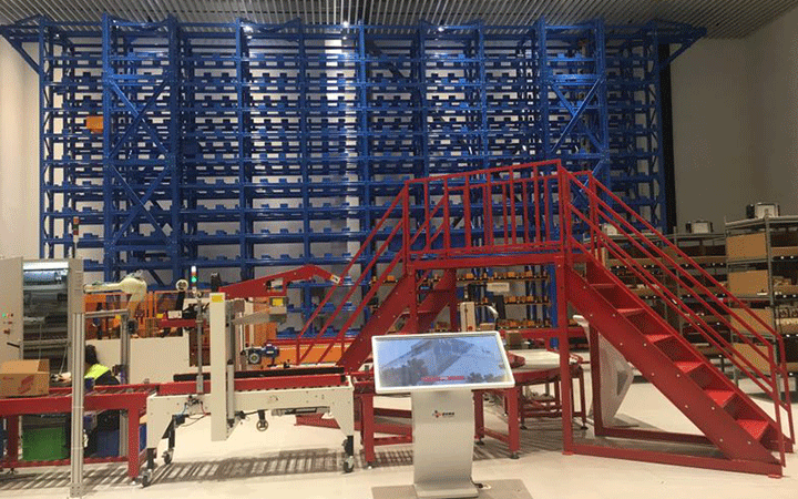 智能立體倉庫貨架通常是組合式鋼結(jié)構(gòu)的建筑物或結(jié)構(gòu)體,貨架內(nèi)是標(biāo)準(zhǔn)尺寸的貨位空間,巷道堆垛起重機(jī)是整個自動化立體倉庫的核心設(shè)備,通過手動操作,半自動操作或全自動操作,穿行于巷道之間的巷道中,出入庫口利用各種輸送機(jī)或AGV/RGV等自行運(yùn)動小車對接巷道堆垛機(jī),實(shí)現(xiàn)把貨物從一處搬運(yùn)到另一處,完成存、取貨的工作。