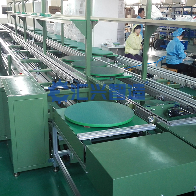 POS機裝配線,是指工件以一定的速率連續(xù)、均勻地通過一系列裝配工作站,按照一定要求在各裝配工作站完成相應(yīng)裝配工作的生產(chǎn)線。匯興智造裝配線是人和機器的有效組合,最充分體現(xiàn)設(shè)備的靈活性,將輸送系統(tǒng)、隨行夾具和在線專機、檢測設(shè)備有機的組合,以滿足多品種產(chǎn)品的裝配要求。裝配流水線的傳輸方式有同步傳輸?shù)?(強制式)也可以是非同步傳輸/(柔性式),根據(jù)配置的選擇,實現(xiàn)手工裝配或半自動裝配。裝配線在企業(yè)的批量生產(chǎn)中不可或缺。