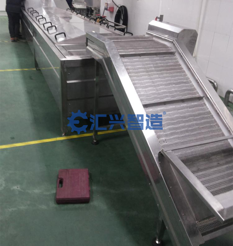 本流水線是由氣泡清洗段、高壓噴淋清洗段、成品挑選區(qū)等組成。物料通過氣泡清洗段,刷洗生姜表面的大部分泥沙,自動提升到高壓清洗環(huán)節(jié),進行生姜的徹底清洗,噴淋段采取可調(diào)節(jié)噴頭,控制噴頭出水量,更好地保護生姜表皮,達到產(chǎn)品出口標準要求。 滾杠式噴淋清洗機 該流水線是由輸送區(qū)、清洗區(qū)、瀝水區(qū)及循環(huán)水處理區(qū)等組成。物料在清洗過程中360度旋轉(zhuǎn),多方位無死角清洗,徹底解決了傳統(tǒng)清洗機設備保潔難、次生污染嚴重的問題。 網(wǎng)帶式清洗機采用高壓氣泡水浴清洗,清洗能力大、洗凈率高且不損傷物料,物料經(jīng)網(wǎng)帶輸送至噴淋清洗后進入下道工序。 噴淋式清洗機 采用高壓噴淋清洗,清洗能力大、洗凈率高且不損傷物料,特別適合嬌嫩果蔬,雜質(zhì)多、難去除的食品清洗,可與篩板、網(wǎng)帶式清洗機組合使用。