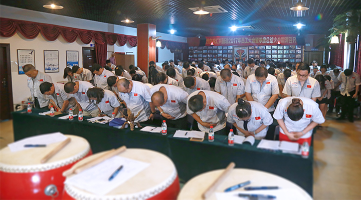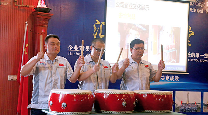 會(huì)議由行政部經(jīng)理袁侃主持。會(huì)議在激昂的《匯興之歌——用心智造世界》 拉開(kāi)帷幕,全體參會(huì)人員向企業(yè)核心價(jià)值觀“孝道、商道、人道”行三鞠躬禮,宣讀企業(yè)愿景——成為全球領(lǐng)先的整廠自動(dòng)化系統(tǒng)解決方案提供商,企業(yè)使命——做受尊敬的好人、造受尊敬的產(chǎn)品、辦受尊敬的企業(yè)、建受尊敬的平臺(tái),企業(yè)精神——用情做人、用心做事,團(tuán)隊(duì)精神——忠誠(chéng)團(tuán)結(jié)、勤奮進(jìn)取。隨后,匯興智造干部職員代表鐘建輝、彭大海,鄭建團(tuán)共同敲響士氣鼓,鼓舞匯興智造牢記初心,砥礪前行。