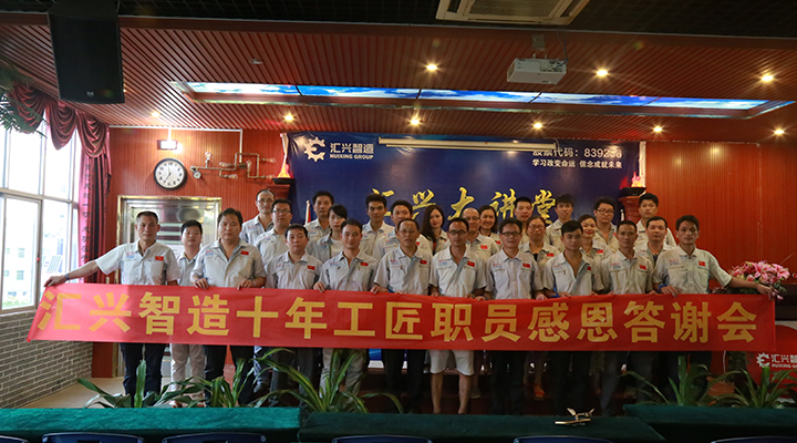 2017年8月6日,廣東匯興精工智造股份有限公司(股票代碼:839258)“十年工匠職員感恩答謝會(huì)”在匯興培訓(xùn)學(xué)校圓滿召開(kāi)。鐘輝、辛曼玉、黃艷、鄧高全、彭大海等高層以及為匯興智造服務(wù)超過(guò)10年業(yè)內(nèi)經(jīng)驗(yàn)豐富的職員代表參加了本次感恩會(huì),精密零部件事業(yè)部銷售副總監(jiān)楊思主持本次會(huì)議。