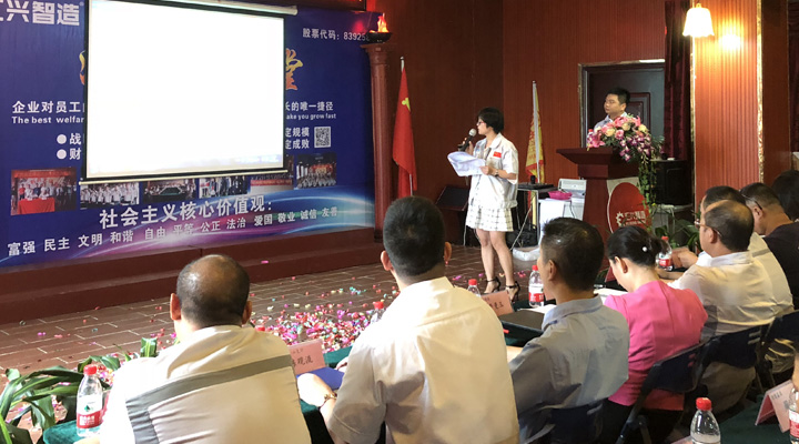 2017年9月28日,廣東匯興精工智造股份有限公司(股票代碼:839258)在匯興學(xué)校召開(kāi)9月份月度大會(huì)及重要簽約儀式。董事長(zhǎng)鐘輝,辛主任,東莞證券郭副總裁一行,大信會(huì)計(jì)事務(wù)所肖所長(zhǎng)一行,華商律師所姜先生一行,中國(guó)銀行大嶺山支行葉行長(zhǎng),建設(shè)銀行大嶺山支行陳行長(zhǎng),東實(shí)集團(tuán)潘經(jīng)理等一系列特別嘉賓及匯興智造各分子公司代表參加此次大會(huì)。人資行政部經(jīng)理袁侃主持本次會(huì)議。