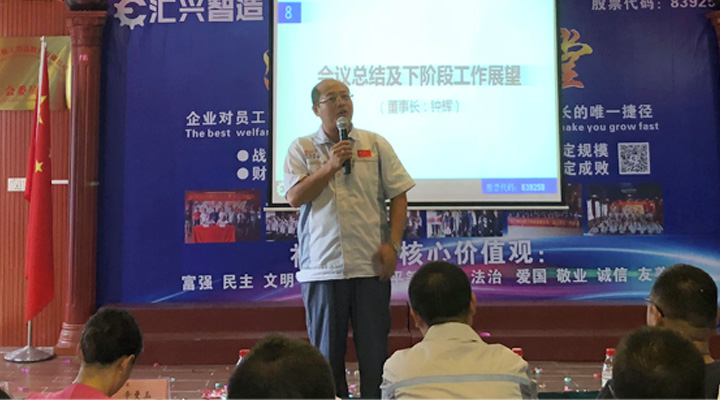 最后,由鐘輝董事長(zhǎng)作會(huì)議總結(jié)及下階段工作展望。董事長(zhǎng)鐘輝表示:“陪伴才是最長(zhǎng)情的告白”感謝各位同事及貴賓對(duì)匯興智造一如既往的支持。企業(yè)的發(fā)展離不開(kāi)每一位的努力,未來(lái)匯興智造將快速發(fā)展的階段。沿著老路去不了新的地方,正如我們會(huì)議場(chǎng)上唱響的歌曲,相信我們創(chuàng)造奇跡。會(huì)議取得圓滿(mǎn)成功,集眾智,匯眾力,搶時(shí)間,抓機(jī)遇,全體匯興人,一諾千金,奮斗到底!