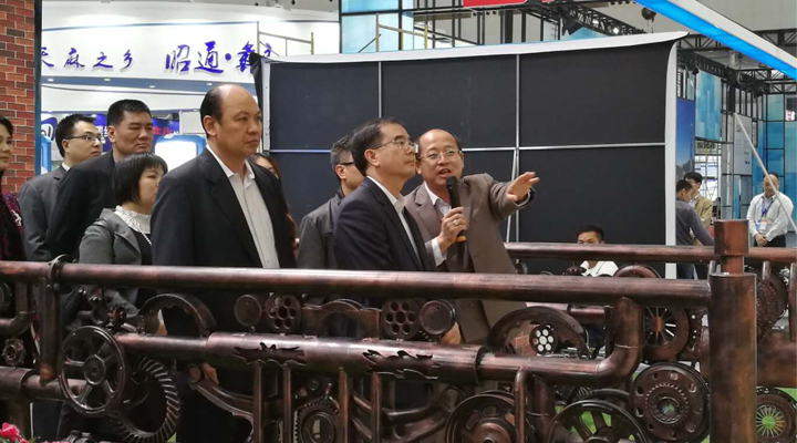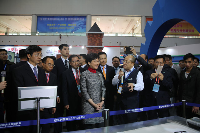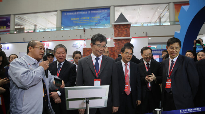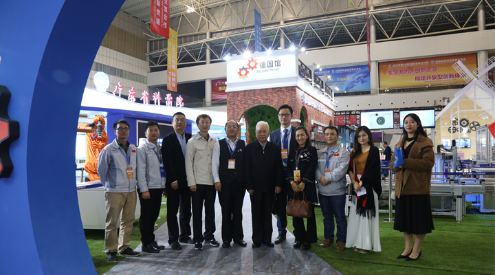 11時許 廣東省副省長黃寧生、原科技部副部長曹健林在東莞市領(lǐng)導(dǎo)的陪同下參觀德國館