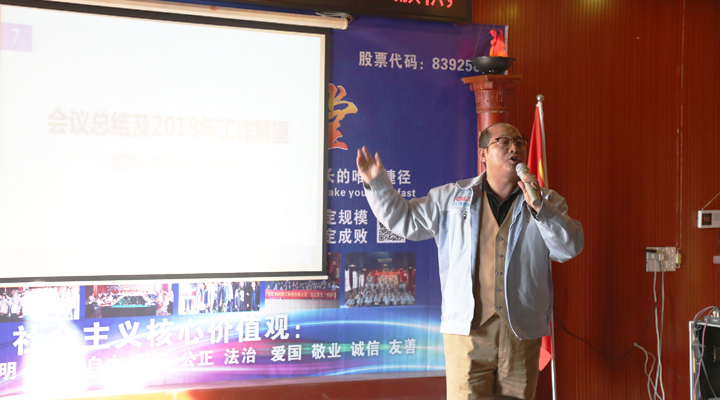 大會(huì)的最后一個(gè)議程是匯興智造鐘輝董事長作會(huì)議總結(jié)及2018年工作展望。鐘輝董事長說道:“我們報(bào)喜不藏憂,變化不變心。2017年,匯興智造喜事不斷:入選東莞市倍增計(jì)劃試點(diǎn)企業(yè);成立東莞市院士工作站;進(jìn)入新三板創(chuàng)新層;獲批了35畝企業(yè)用地;市重大項(xiàng)目補(bǔ)助落實(shí);德國子公司建立;在國際科技合作周活動(dòng)中,承辦的德國館和論壇萬眾矚目,省長、各部級(jí)領(lǐng)導(dǎo)、院士大加贊賞;申報(bào)了廣東省成長型企業(yè);戰(zhàn)略性新興產(chǎn)業(yè)骨干(培育)企業(yè)評(píng)審?fù)ㄟ^;銀行授信額度增大;知識(shí)產(chǎn)權(quán)貫標(biāo);業(yè)績倍增,納稅1000多萬,成為大嶺山鎮(zhèn)納稅大戶。雖然我們?nèi)〉昧撕玫某煽?,獲得了好的聲譽(yù),但我們不能藏憂,人才建設(shè)的加強(qiáng);管理制度的完善;銷售業(yè)績的增長;訂單的消化;收款流程的優(yōu)化;各部門溝通協(xié)調(diào)的加強(qiáng)等等,我們還有很多問題需要解決?!埲招?,日日新,又日新’,生活從不眷顧因循守舊、滿足現(xiàn)狀者。我們要變化,有了變化,才有進(jìn)步。我們的車間變得更規(guī)范,辦公區(qū)域變得更漂亮;供應(yīng)商變得更優(yōu)質(zhì);我們提供給客戶的產(chǎn)品和服務(wù)變得更豐富;客戶群體變得更高端。但是不管怎么變,任爾東西南北風(fēng),在即將到來的2018年,我們?nèi)匀粓?jiān)守初心,牢記使命,砥礪前行?!?nbsp;
