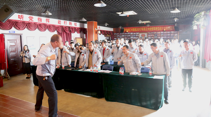“為夢想沖刺,我是匯興智造的一名忠誠戰(zhàn)士,殺!殺!殺!”,震天喊聲響徹會(huì)場,匯興人殺掉困惑,殺掉不妥,殺掉阻礙,挺胸抬頭,勇往直前?!靶坳P(guān)漫道真如鐵,而今邁步從頭越”,2017已不可追,2018正等著匯興智造再創(chuàng)佳績。