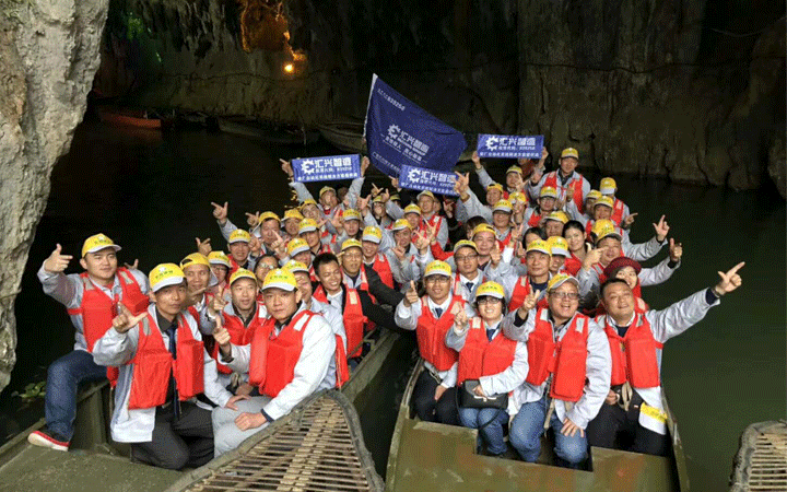 旅途第三站:洞天仙境。洞口有一巨大的鐘乳石向下垂吊,從巖洞口乘船而入,在眾多奇姿怪態(tài)的鐘乳間穿掠。穿過一段狹窄的地方進入到洞內(nèi),視野豁然開朗,有綠樹、蔓草、野花,抬頭仰望,洞中有天,洞天相連,讓人嘆為觀止。“夢想之旅”的團隊成員們在感嘆大自然的神奇時,也表示天外有天,人外有人,只有不斷前行,才有更廣闊的天地。邊走邊看,邊看邊想,“夢想之旅”讓匯興智造的骨干們看得更遠,想得更深,真是不虛此行。