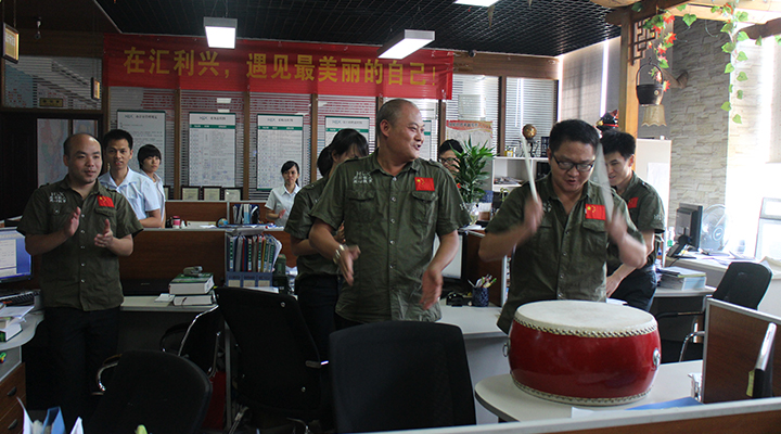 人逢喜事精神爽,25日單天,匯利興集團(tuán)設(shè)備部門(mén)同時(shí)”斬獲“兩份大額訂單:衛(wèi)浴生產(chǎn)線與滾筒輸送線總價(jià)46萬(wàn);上下層組裝線32萬(wàn)。恰逢科協(xié)領(lǐng)導(dǎo)到來(lái),由工程業(yè)務(wù)員鐘文于公司辦公室擊鼓激勵(lì)士氣。