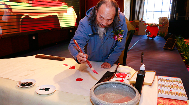 著名書畫藝術家?guī)X南畫派泰斗梁培浩教授現(xiàn)場創(chuàng)作<span style="font-family:" font-size:14px;"="">