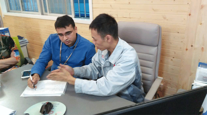 匯興智造董事長鐘輝與孟加拉客戶親切合影