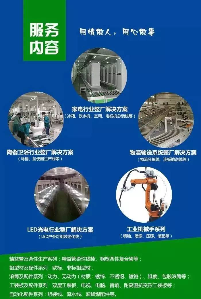 廣東匯興精工智造股份有限公司作為國家高新技術企業(yè),正逐步成為全球領先的整廠自動化系統(tǒng)解決方案提供商,匯興智造為家用電器、衛(wèi)浴陶瓷、新能源、LED、汽車零部件、家具廚具、物流輸送、精密電子電器、醫(yī)藥食品、包裝印刷等細分領域提供整廠自動化系統(tǒng)解決方案及精密工業(yè)自動化配件一站式采購服務。其中,家電生產線是匯興智造的王牌產品,主要為:電冰箱、微波爐、空調、液晶電視機、熱水器、烤箱等制造企業(yè)提供智能自動化生產方案。