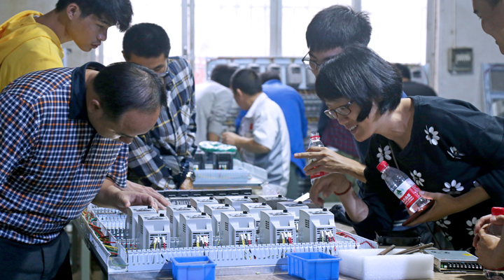 在車(chē)間,同學(xué)們看著工人熟練而又嚴(yán)謹(jǐn)?shù)亟o電箱接線(xiàn),一片肅穆。有同學(xué)低聲道:“我們平時(shí)也接線(xiàn),但與他們比較起來(lái),就做得太粗糙?!庇袝r(shí)候距離的產(chǎn)生僅僅在于態(tài)度。在匯興,你可以體驗(yàn)科技,學(xué)習(xí)知識(shí),權(quán)衡方法。