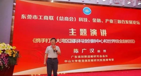 大會(huì)還邀請(qǐng)廣東省創(chuàng)新戰(zhàn)略研究會(huì)會(huì)長、中山大學(xué)粵港澳發(fā)展研究院首席專家陳廣漢教授作了《攜手打造大灣區(qū)國際科技創(chuàng)新中心和世界級(jí)金融樞紐》主題演講。陳廣漢教授就東莞在參與粵港澳大灣區(qū)建設(shè)的過程中,在推動(dòng)科技、金融、產(chǎn)業(yè)“三融合”方面的機(jī)遇與主要努力方向進(jìn)行全方位解讀。