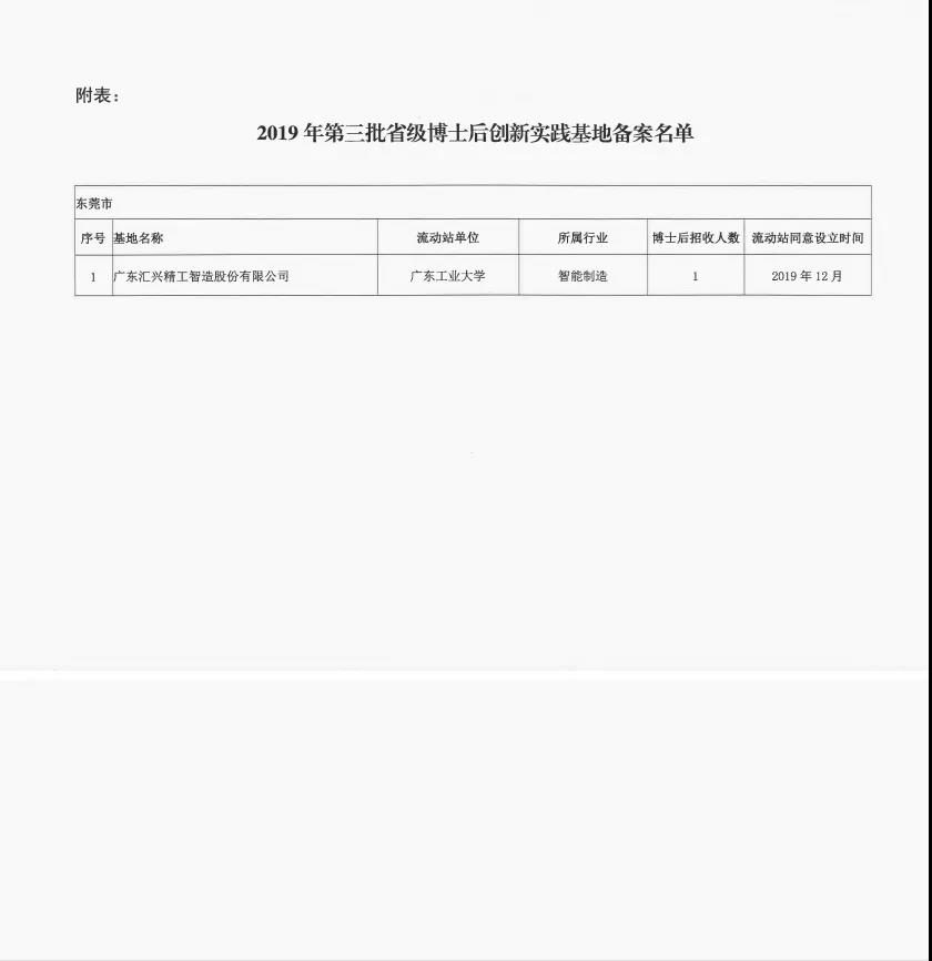 歲序剛翻新,喜訊緊相隨。日前,廣東匯興精工智造股份有限公司(簡稱:匯興智造)成功通過廣東省人力資源和社會保障廳備案,與廣東工業(yè)大學(xué)合作建立“省級博士后創(chuàng)新實踐基地”,為博士后科研平臺建設(shè)再添“生力軍”。