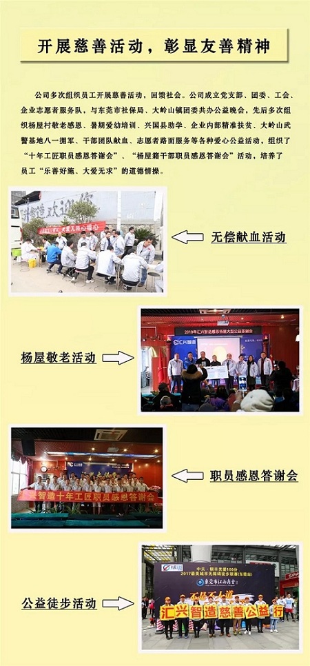 如果信念有顏色,那一定是中國紅!無償獻(xiàn)血是無私奉獻(xiàn)、救死扶傷的崇高行為,是我國血液事業(yè)發(fā)展的強(qiáng)大助力和保障。匯興智造作為東莞市首批10家“友善企業(yè)”之一,始終在堅(jiān)持以人為本,注重人文關(guān)懷的同時,致力于將“友善”的價值觀、理念融入公司日?;顒又?,通過快樂工作,幸福生活的獨(dú)具特色的“友善文化”和“一個行業(yè) 一個家庭 一所學(xué)校 一支軍隊(duì)”的人文理念,把社會主義核心價值觀融入到員工思想教育工作之中;夯實(shí)“友善企業(yè)”基礎(chǔ)、打造“友善環(huán)境”陣地、構(gòu)建友善勞動關(guān)系。在點(diǎn)點(diǎn)滴滴中融合、滲透,全方位落地生根,營造和諧友善氛圍和人文環(huán)境,積極提升員工的幸福感和自豪感,讓員工在公司平臺上充分展現(xiàn)自我,實(shí)現(xiàn)自身價值,創(chuàng)享更加美好的生活。