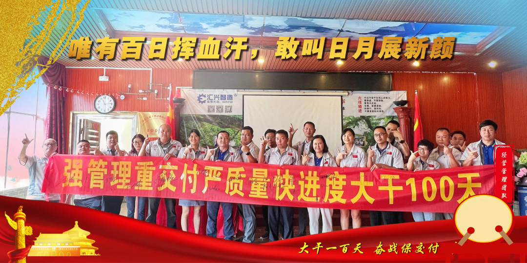“決戰(zhàn)”的號(hào)角已經(jīng)吹響,一場(chǎng)沒(méi)有硝煙的戰(zhàn)役已經(jīng)開(kāi)啟,在接下來(lái)的100天里,匯興智造的全體員工將以昂揚(yáng)的姿態(tài)奮勇前行,向著目標(biāo)全力沖刺!